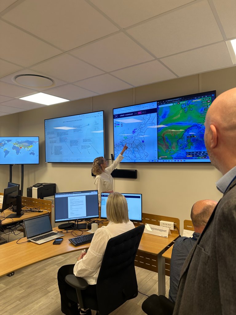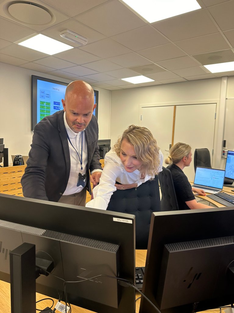 I Nkoms operasjonsrom fekk statsråden treffe beredskapsvaktene som handterer utfall i ekom-nett. Beredskapsvaktene er på døgnet rundt, og fungerande seksjonssjef Sander Norrøne Ask forklarte statsråden korleis det operative tryggleiksarbeid blir følgd opp. I tillegg presenterte fungerande seksjonssjef Line Ugland Nyseth korleis EkomCERT jobbar i samspel med andre myndigheiter når cyberangrep og digitale hendingar oppstår i Noreg.
