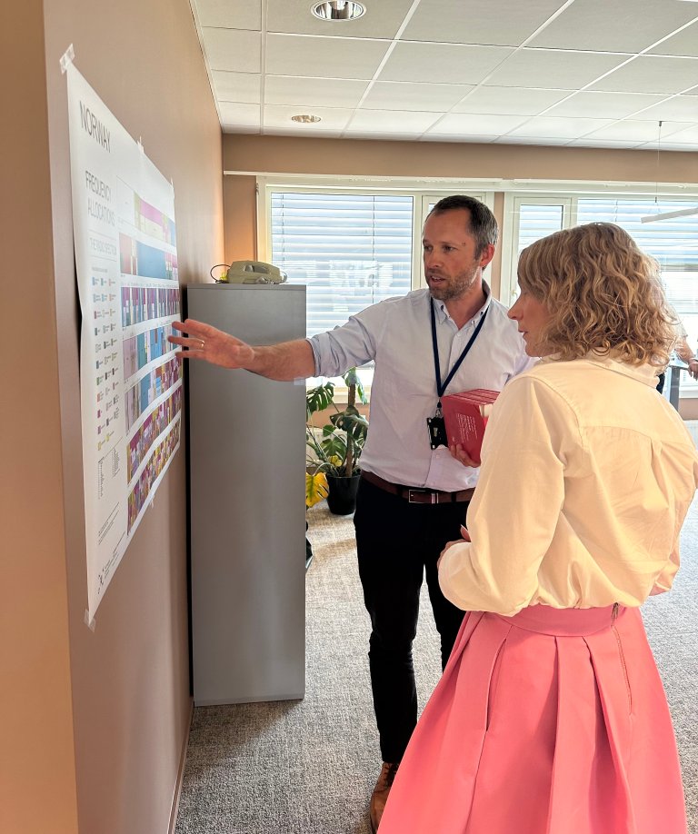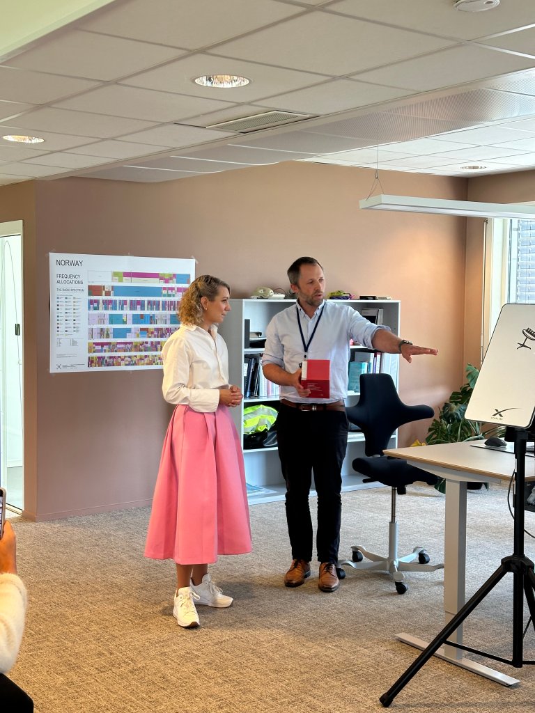 Den norske frekvensforvaltninga ligg til Nkom, og seksjonssjef Frode Målen gav statsråden ei innføring i korleis det internasjonale radioreglementet blir forhandla fram. I tillegg fekk ho møte fagmiljøet og høyre korleis frekvensforvaltninga i Noreg blir følgd opp og tildelingar blir gitt, mellom anna til lokale 5G-nett. Ho fekk også gjensyn med frekvenskontrollen, som ho møtte ute i felt i februar i år.